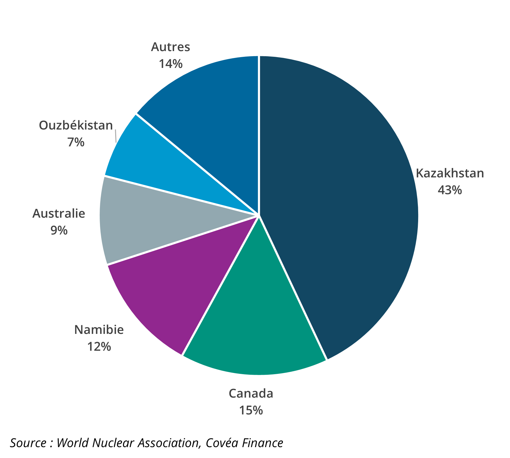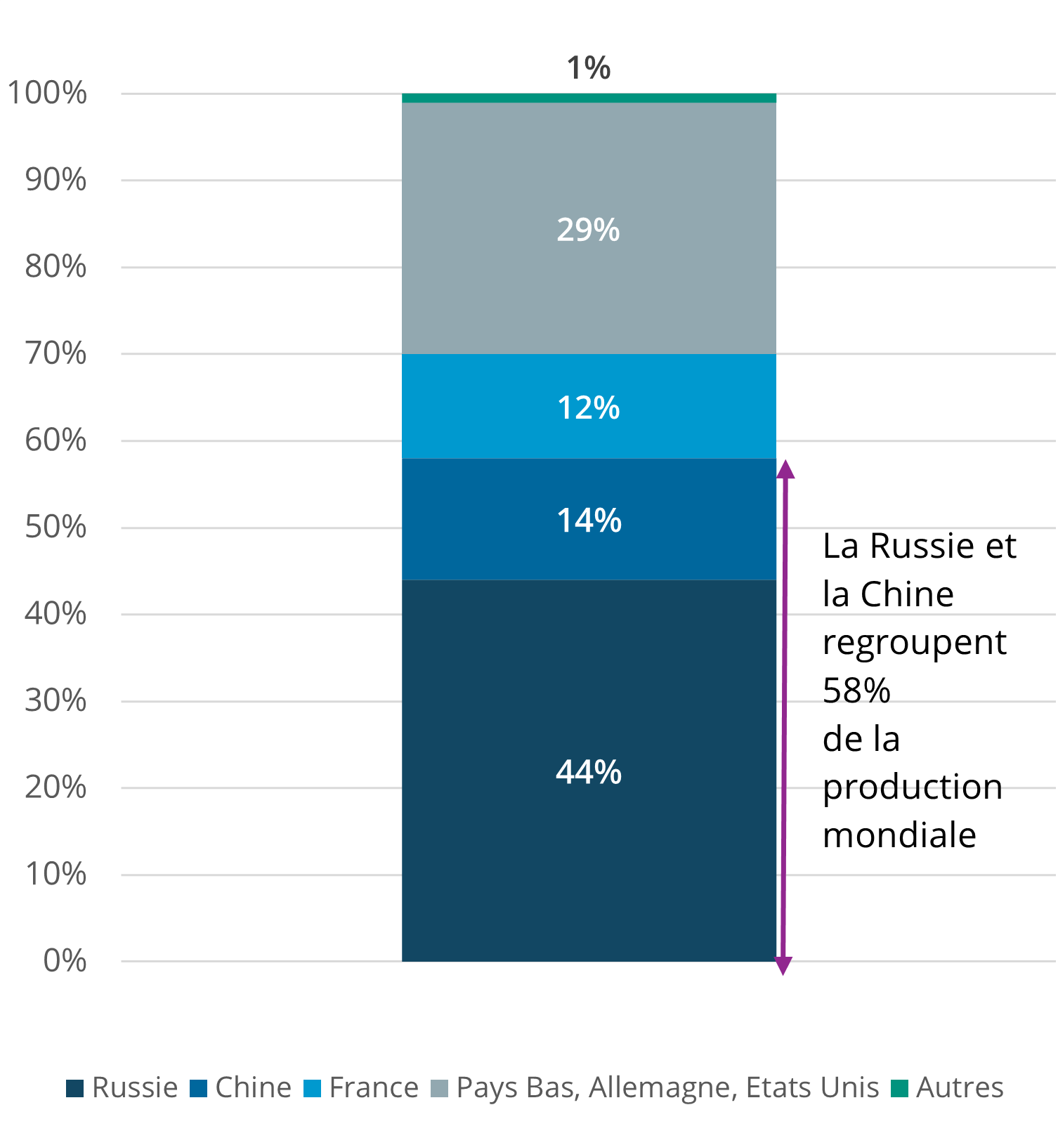Toutefois, le redéploiement occidental du nucléaire se heurte à une série de défis majeurs. La concentration géographique du minerai d’uranium et des capacités d’enrichissement est un de ces défis : 80% de l’extraction d’uranium est concentrée dans 5 pays : le Kazakhstan (43%), le Canada (15%), la Namibie (12%), l’Australie (9%) et l’Ouzbékistan (7%). Cette dépendance crée une vulnérabilité stratégique pour les pays importateurs, comme les États-Unis et l’Union européenne, qui ne disposent pas de gisements significatifs. L’enrichissement d’uranium est un autre maillon critique sur la chaîne de valeur. La Russie contrôle 44% de la capacité d’enrichissement et la Chine 14%.